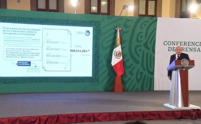Durante la conferencia mañanera de este viernes, el presidente López Obrador señaló como «reprobable» el hecho de que a través de la Agencia de Estados Unidos para el Desarrollo Internacional de la Embajada de ese país en México, la organización Mexicanos Contra la Corrupción e Impunidad haya recibido más de 50 millones de pesos.