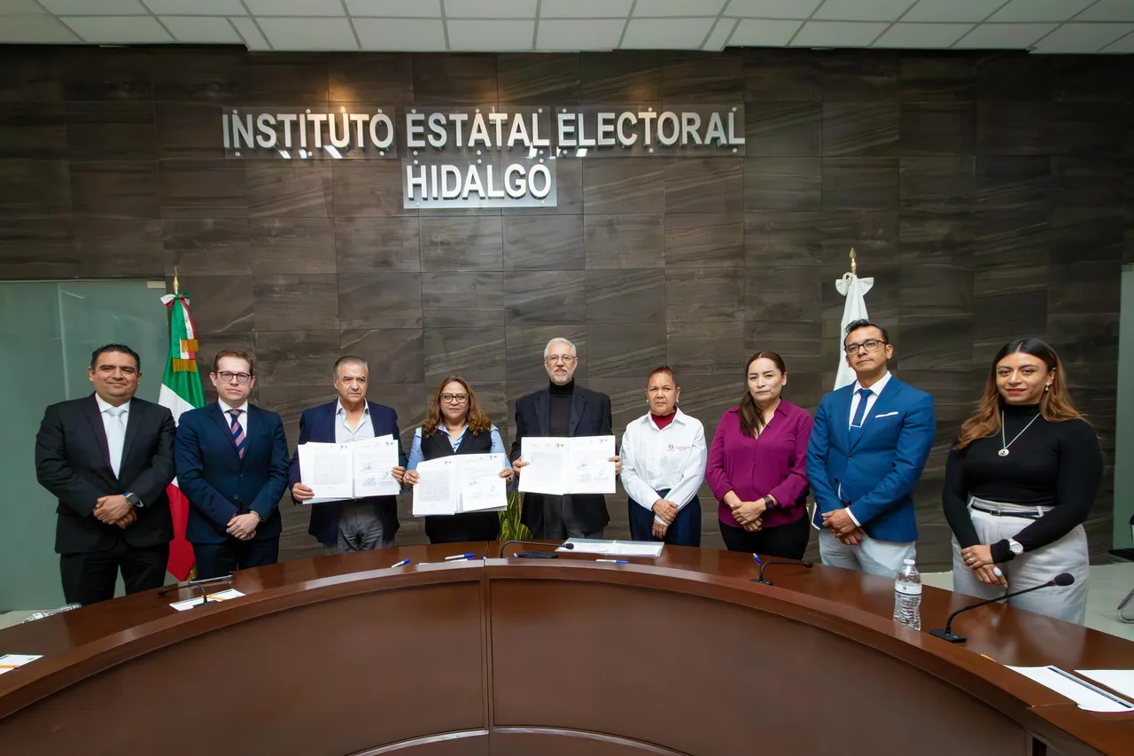 Tras la sesión, se llevó a cabo la firma oficial de los convenios. La consejera presidenta del IEEH, María Magdalena González Escalona, explicó que las Mesas Receptoras serán integradas por ciudadanos seleccionados aleatoriamente que ya han participado en procesos electorales anteriores, reforzando el carácter ciudadano del ejercicio. Invitó a los habitantes de los tres municipios a recibir al personal del Instituto, que acudirá a sus domicilios para entregar nombramientos e invitaciones.