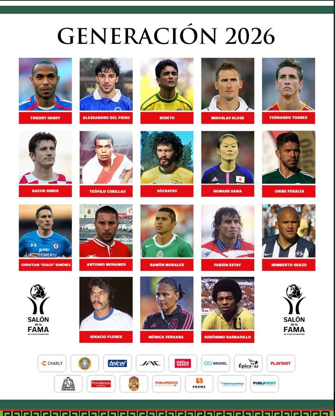 En el plano internacional y femenil, la lista incluyó figuras históricas como Paulo Roberto Falcão, Teófilo Cubillas, Peter Shilton, así como referentes del futbol femenil como Mónica Vergara, Fátima Leyva y Homare Sawa.