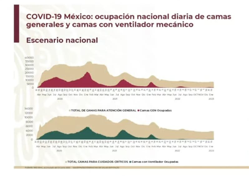 Mientras que a lo largo de la sexta ola se mantuvieron en mínimas las ocupaciones hospitalarias de las camas ocupadas por enfermedades respiratorias, así lo informó el subsecretario de Salud Hugo López Gatell Ramírez.