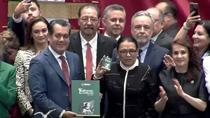 La secretaria de Gobernación, Rosa Icela Rodríguez, entregó este 1 de septiembre en la Cámara de Diputados el Primer Informe de Gobierno de la Presidenta Claudia Sheinbaum, en cumplimiento a lo dispuesto en el artículo 69 de la Constitución.