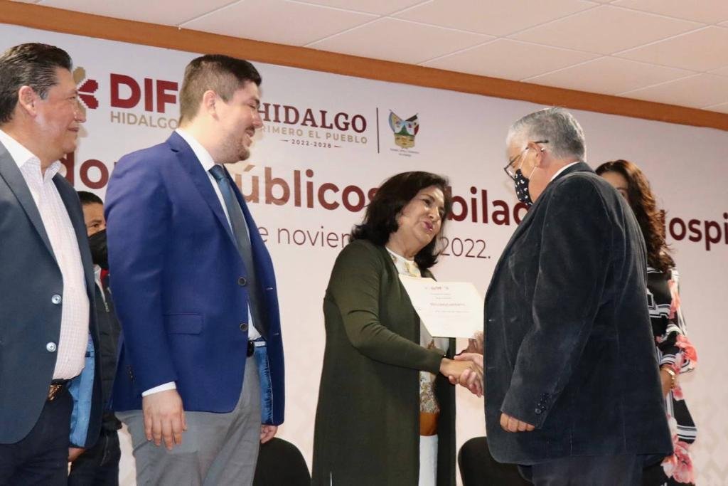 La ceremonia fue presidida por Edda Vite, presidenta del Patronato del Sistema DIF en compañía de Celia Chavarín, directora general de Desarrollo Social DIFH; Rubén Hurtado, director del Hospital del Niño DIF y Víctor Licona, secretario general del Sindicato Único de Trabajadores al Servicio del Poder Ejecutivo del Estado de Hidalgo (SUTSPEEH).