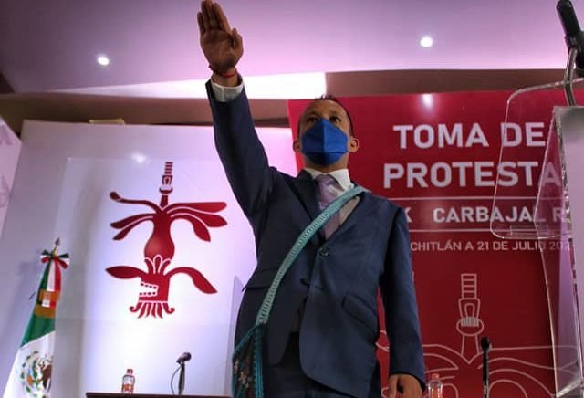 Además, un representante de las comunidades hizo entrega a Carbajal de un topil, que simboliza el augurio para un buen gobierno y administración para el bien común. Debido a la tercera ola de contagios el evento de toma de protesta se llevó a cabo de forma virtual y fue transmitido por Facebook.