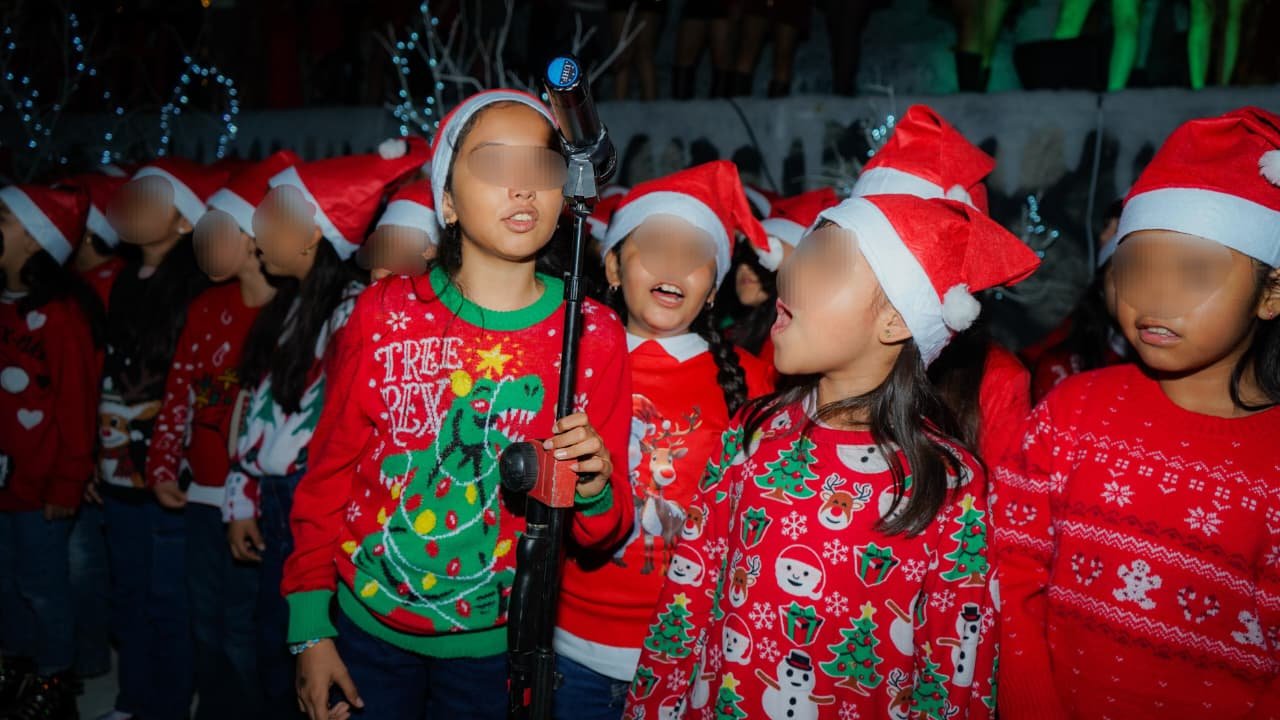La ceremonia incluyó la participación del Estudio de Danza Saldívar y de un Coro Monumental Navideño, conformado por estudiantes de cinco escuelas primarias del municipio.
