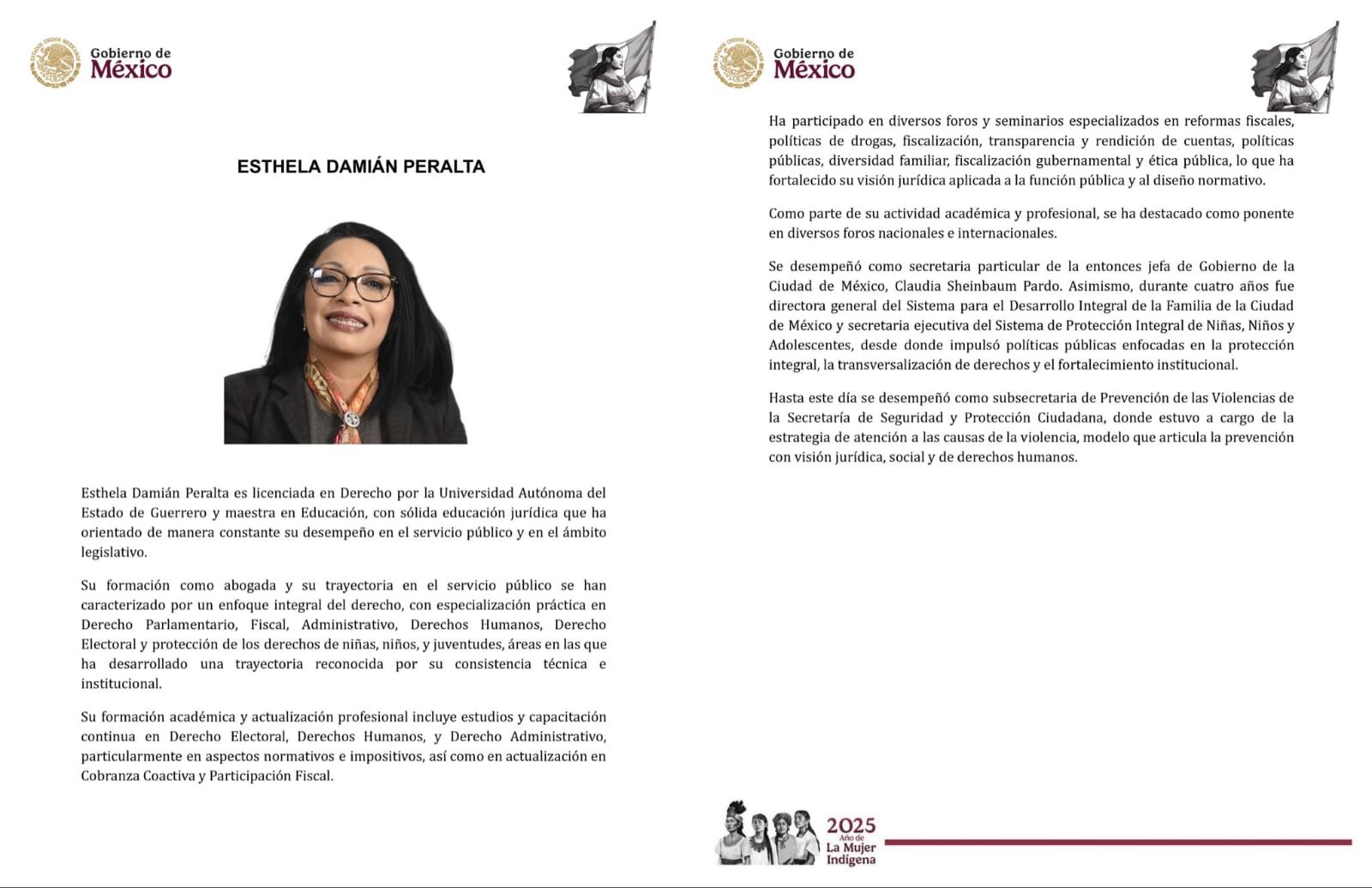 La abogada y política Esthela Damián Peralta sustituye a Ernestina Godoy por nombramiento de la presidenta Claudia Sheinbaum