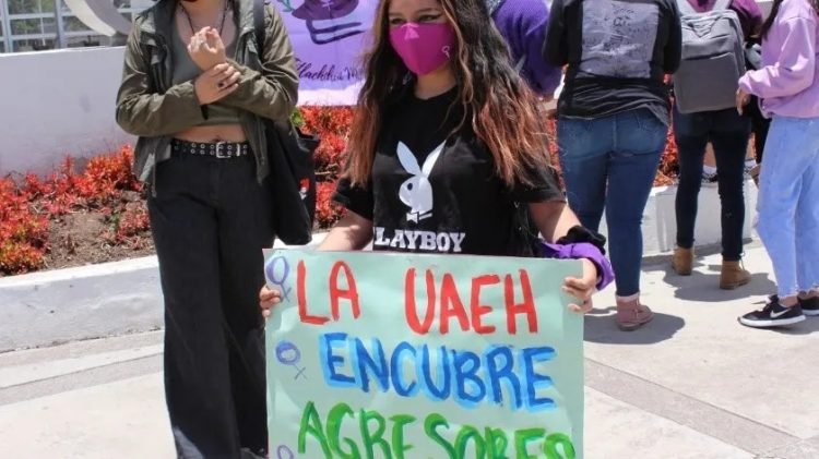 Esta tarde, un grupo de estudiantes de la Universidad Autónoma del Estado de Hidalgo (UAEH) se dieron cita a las afueras de Ciudad del Conocimiento, en donde colgaron un tendedero de denuncias en donde señalan que la institución encubre a profesores que acosan sexualmente a sus alumnas.