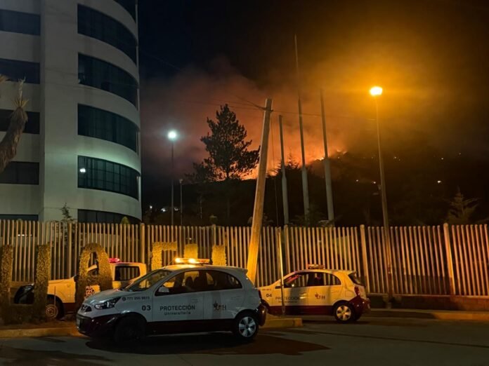 La intensa humareda cubrió gran parte de la zona este de la capital hidalguense, lo que llevó a las autoridades universitarias a activar los protocolos de seguridad y protección civil.