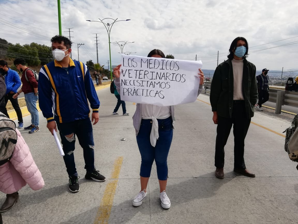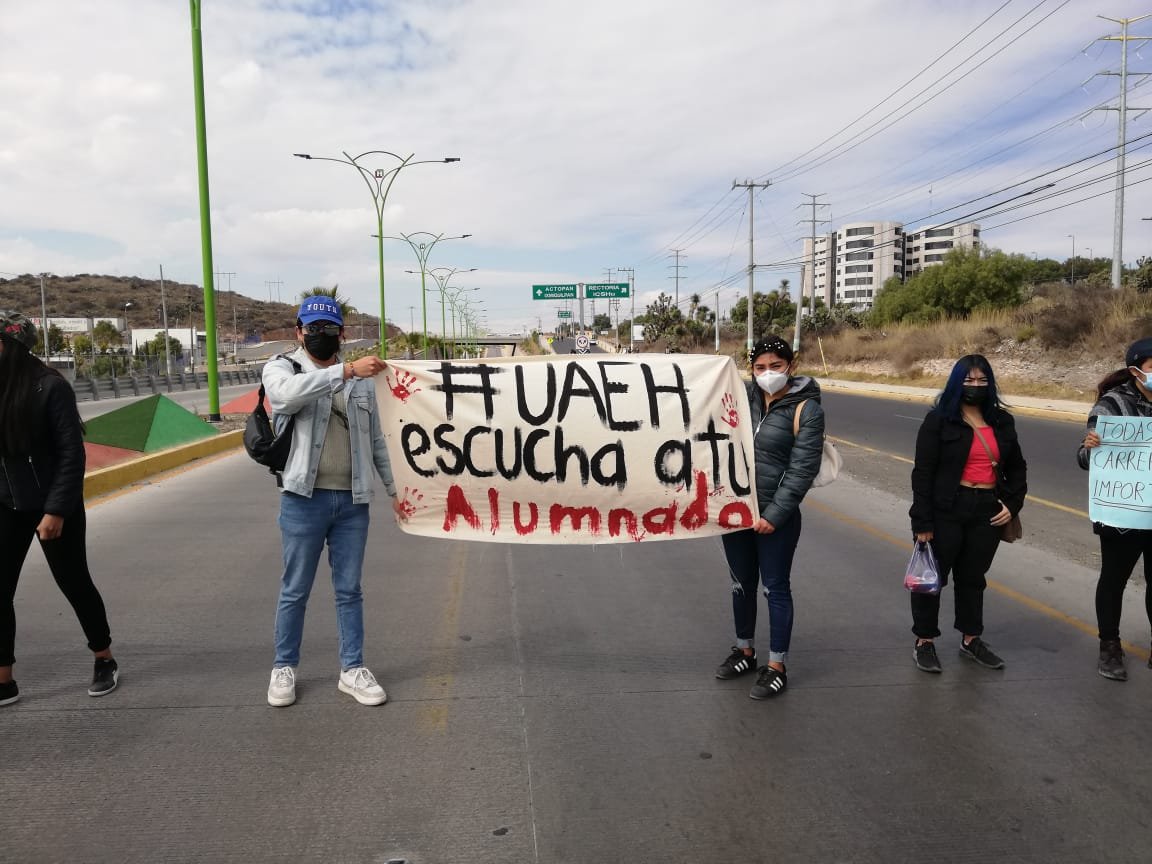 Con pancartas en mano, así como sus mochilas, las y los estudiantes decidieron cerrar la carretera Pachuca – Actopan a la altura de la rectoría en ambos sentidos, desde las 10:00 de la mañana para dar voz a su exigencia.