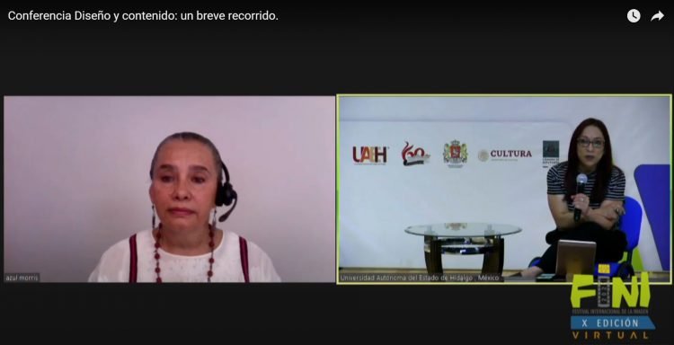 Pachuca, Hidalgo. –La connotada diseñadora gráfica Azul Morris, impartió virtualmente la conferencia “Diseño y contenido: un breve recorrido”, en el marco de la décima edición del Festival Internacional de la Imagen (FINI), que organiza la Universidad Autónoma del Estado de Hidalgo (UAEH).