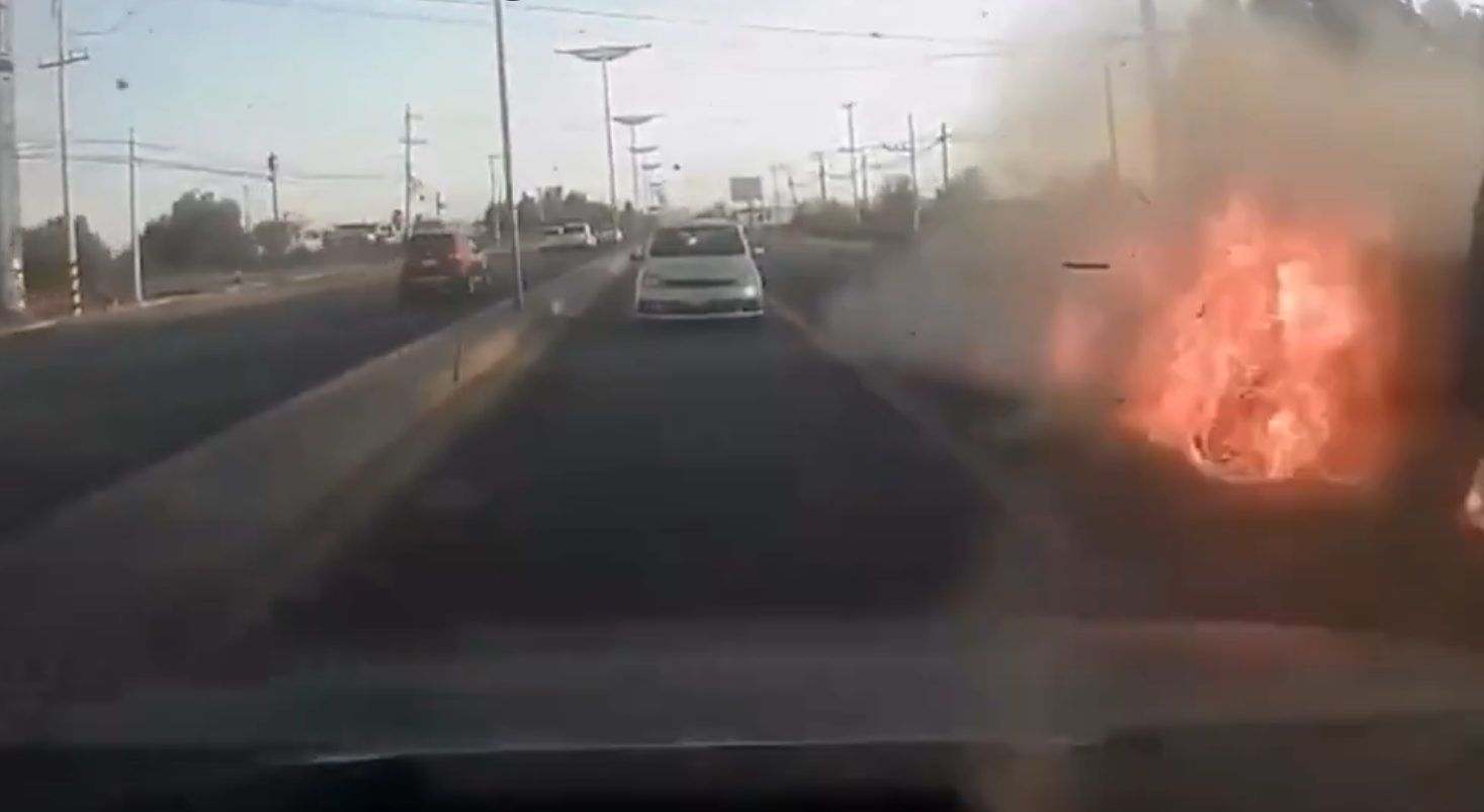 En redes sociales circula un video donde se observa el momento exacto de la explosión, tomado desde el tablero de una unidad que circulaba apenas unos metros adelante.  Testigos describieron un estruendo muy fuerte seguido de una bola de fuego que envolvió la camioneta en cuestión de segundos, generando pánico entre automovilistas que circulaban por la zona.