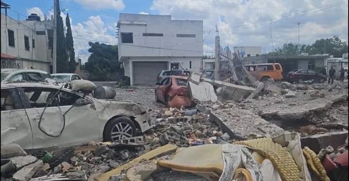 Tras fuerte explosión registrada en una casa de la colonia Módulo 2000 en Reynosa Tamaulipas se reportan hasta el momento un saldo de dos personas muertas, decenas de heridos, unas 30 casas y 40 vehículos dañados.