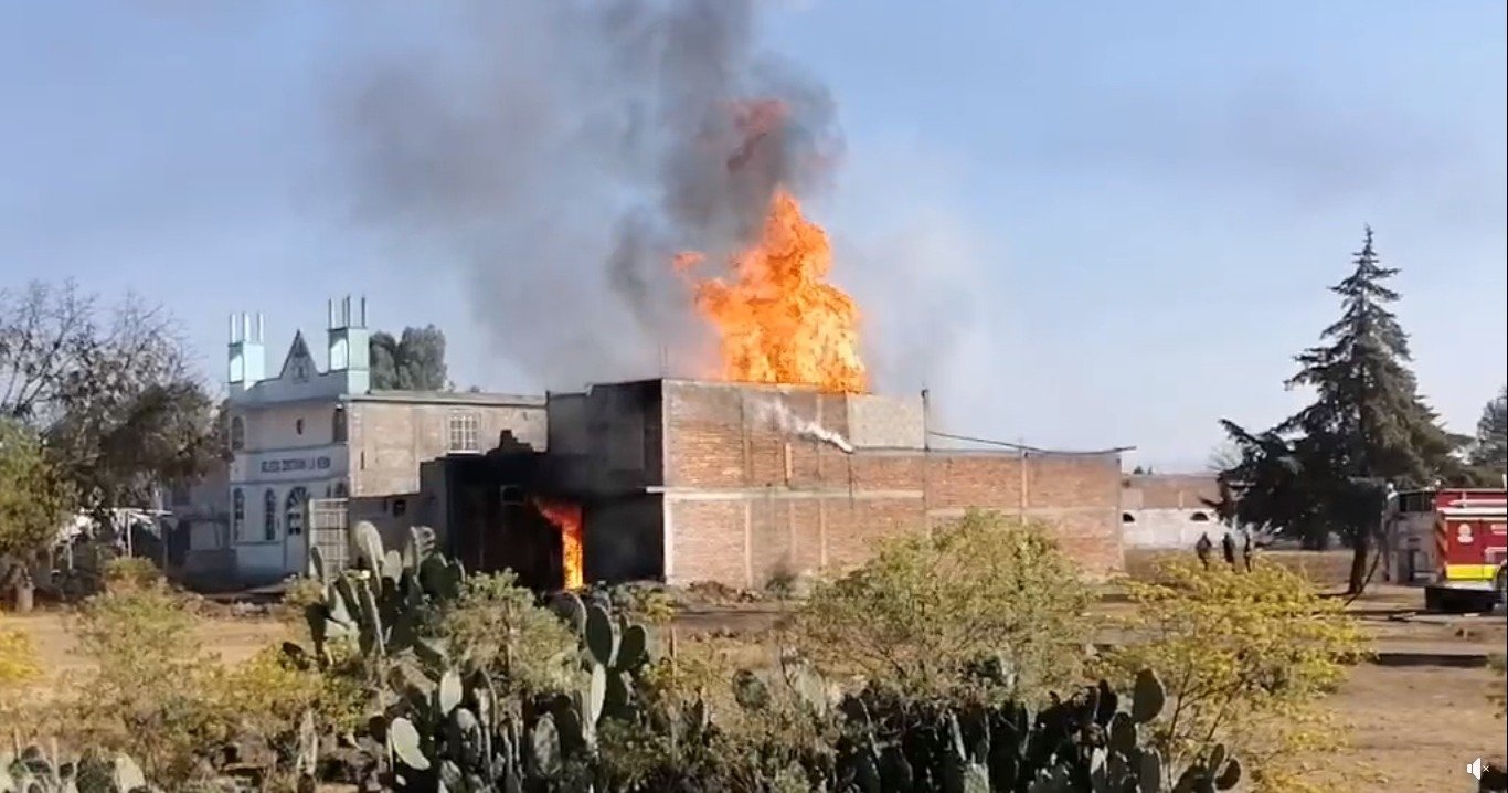 Un fuerte incendio se registró en una fábrica de veladoras en la localidad San Antonio Farías, perteneciente al municipio de Tulancingo.