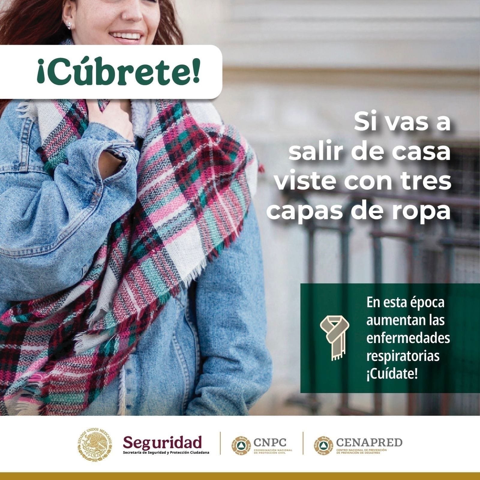 Las autoridades de Protección Civil también recomiendan mantenerse informados sobre los avisos meteorológicos y abrigarse adecuadamente ante la entrada del nuevo frente frío polar.