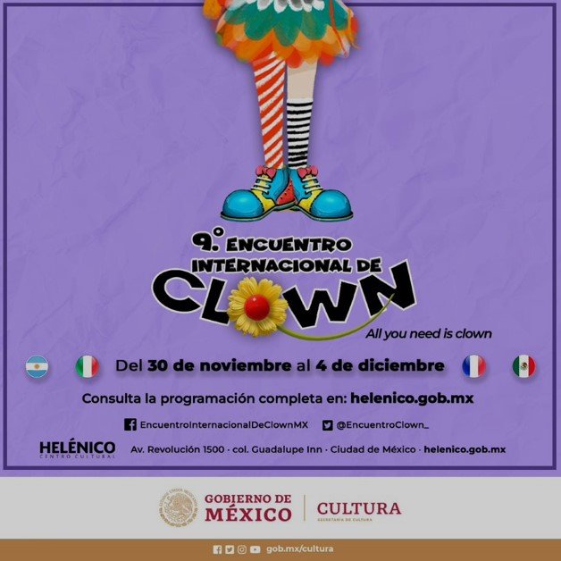 Consulta horarios, precios, descuentos y combos en la página: https://www.helenico.gob.mx/9o-encuentro-internacional-de-clown/
