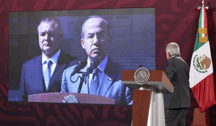 “Yo creo que sí hay elementos para sostener de que imperó durante el gobierno de Calderón un narcoestado porque fue un gobierno, de principio a fin, violatorio de la Constitución, un gobierno como lo dijimos en su momento, espurio”, dijo el mandatario tras mostrar al inicio de su mañanera cómo es el búnker que García Luna presumía a visitantes nacionales y extranjeros.