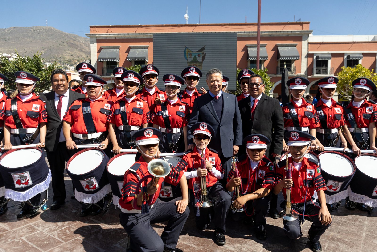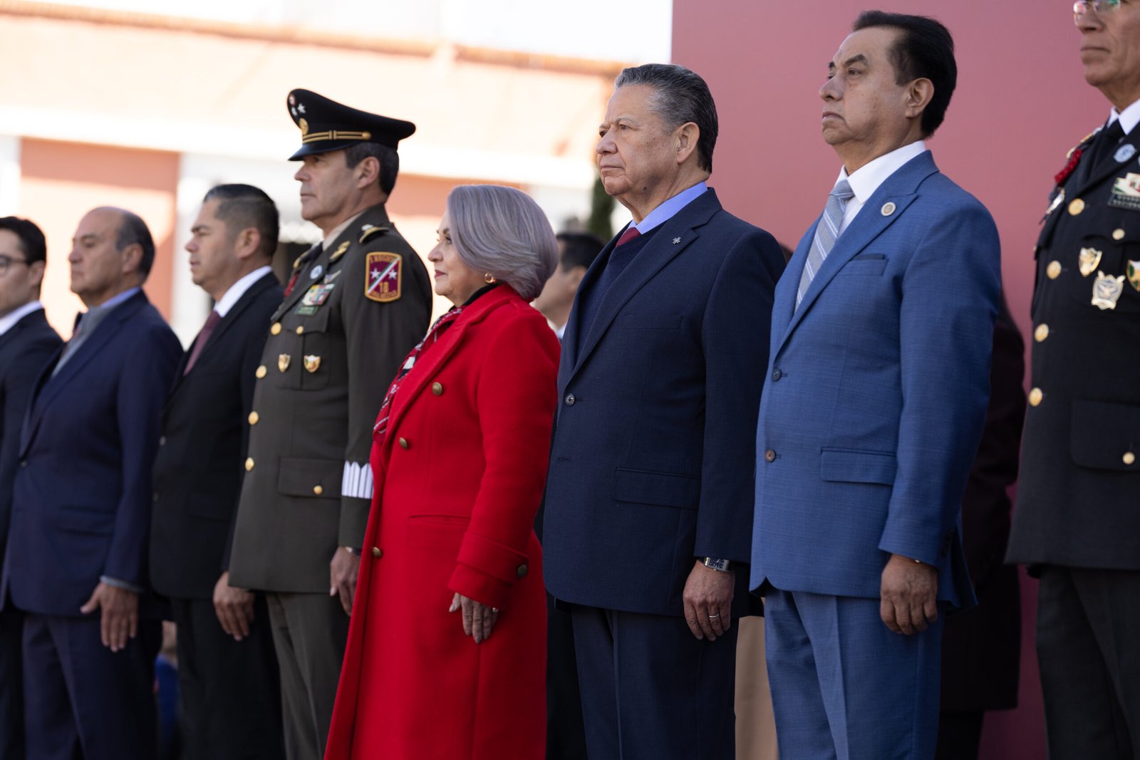 El acto se desarrolló en enlace protocolario con la ceremonia nacional presidida desde el Campo Militar Marte por la titular del Poder Ejecutivo Federal, Claudia Sheinbaum Pardo, quien realizó la toma de protesta y abanderamiento de 920 escoltas de escuelas secundarias y de nivel medio superior de todo el país.