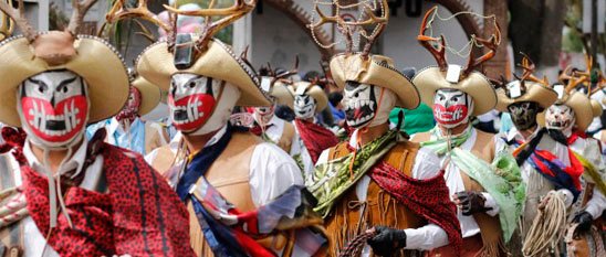 En Huejutla , el carnaval toma un giro místico al rendir homenaje a los seres del inframundo. Los participantes lucen tocados de plumas y máscaras de tela, culminando con la impactante danza de fuego, un ritual que invita al señor de las tinieblas a regresar al bajo mundo.