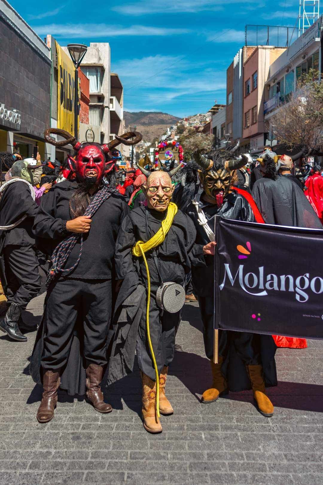 En Molango , destaca la figura del «meco tradicional», caracterizado por sus colores negro y rojo, y máscaras que diablos y animales. Mientras tanto, en Calnali y Mixquiahuala de Juárez , los desfiles cobran vida con personajes como el comanche, la dama, los viejitos y la muerte, quienes llenan de energía y color las calles.