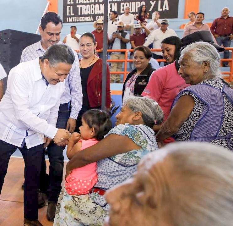El gobernador Julio Menchaca Salazar entregó las tarjetas de los programas de Bienestar a familias de Pacula.