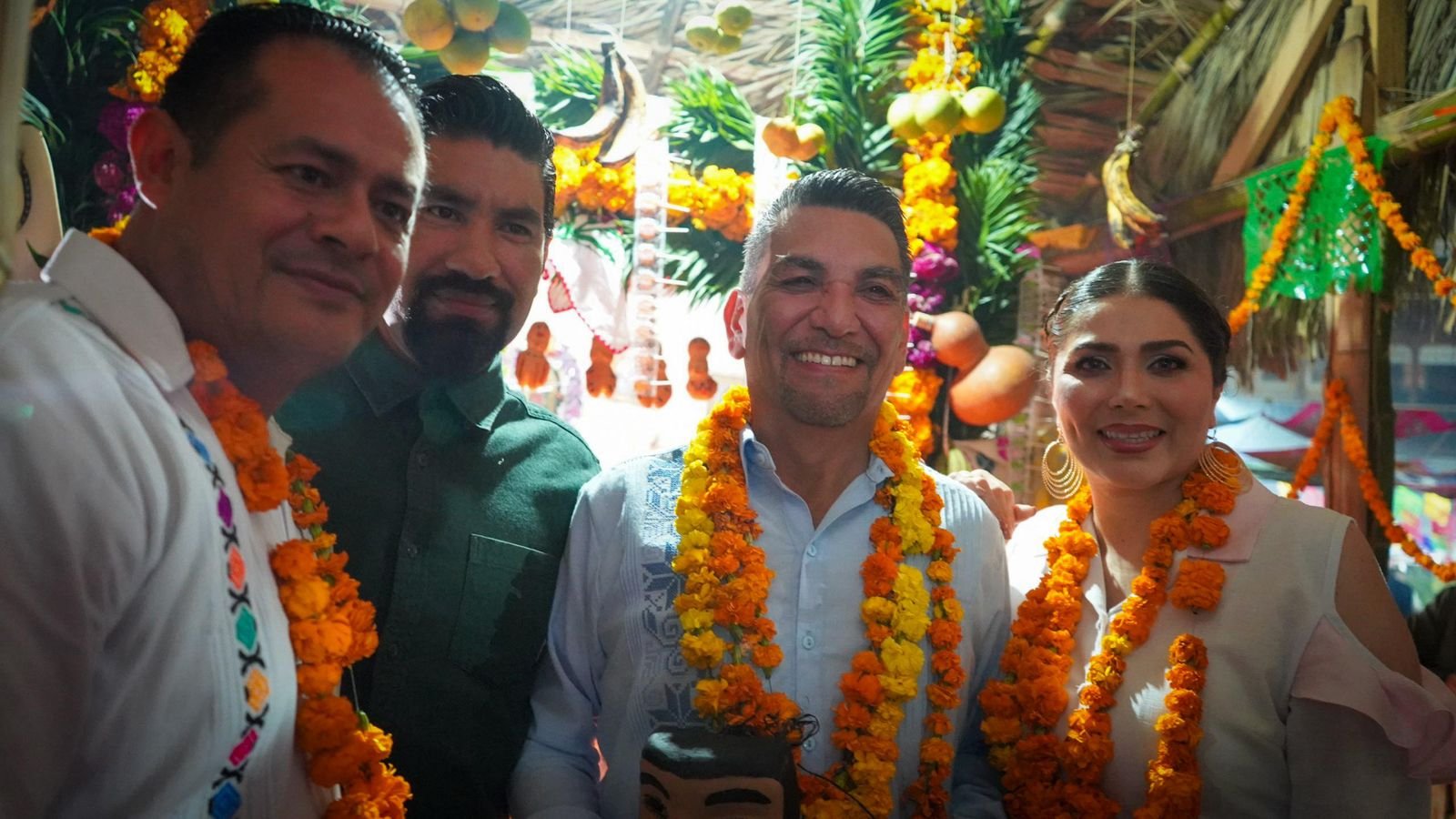 Previo al acto principal, las autoridades recorrieron las exposiciones de altares y gastronomía instaladas en la Plaza Nicandro Castillo, donde visitantes locales y turistas pueden apreciar la riqueza de la tradición huasteca.