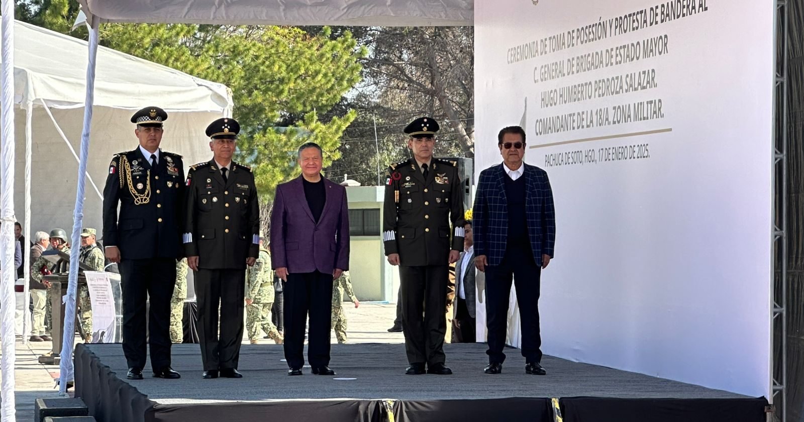 La mañana de este 17 de enero, el General Hugo Humberto Pedroza Salazar rindió su toma de posesión y protesta de bandera como nuevo comandante de la 18va Zona Militar de Pachuca.