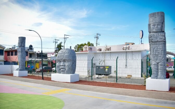 Así mismo se colocó una cabeza Olmeca y réplicas de los Atlantes de Tula de fibra de vidrio.