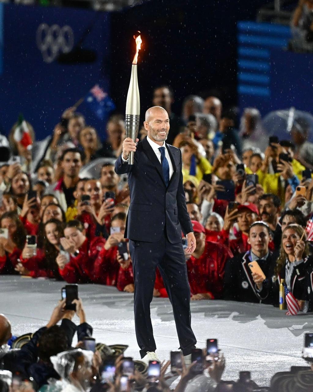 Minutos antes quien entregaría la antorcha al tenista español, fue el gran futbolista francés Zinedine Zidane, otra leyenda deportiva.