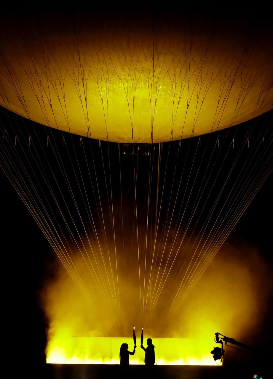 Mientras que quienes encendieron la llama en el pebetero, fueron la exatleta Marie-José Perec y el judoca Teddy Riner, ambos campeones olímpicos quienes se acercaron a un espectacular globo aerostático y ahí encendieron el pebetero que se elevó en el jardín de las Tullerías.