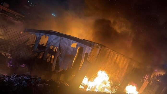 Durante la madrugada de este lunes, las llamas consumieron parte del corralón de «Grúas Hidalgo» en la colonia Ciudad de los Niños. ¡El fuego se veía desde varios puntos! 🔥🚒
