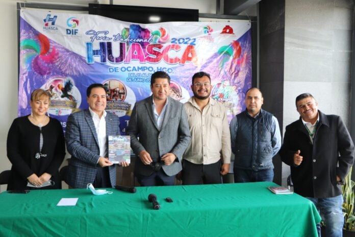 El secretario de Turismo, Eduardo Baños Gómez y el alcalde Francisco Mayoral Flores, presentaron el cartel de la Feria Huasca 2022 que inició este jueves con peleas de gallos y concursos en el centro de este enigmático lugar donde no solo te vas a divertir, sino que disfrutaras de su gastronomía y sus actividades al aire libre