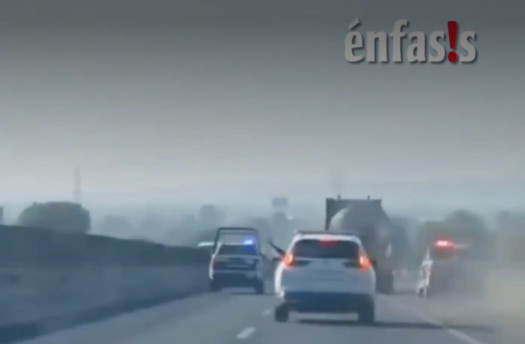 La persecución concluyó a la altura de San Jerónimo, en el municipio de Tecámac, donde elementos de seguridad lograron interceptar el tráiler. Durante la acción, y ante la negativa del conductor de detenerse, las autoridades realizaron disparos dirigidos a las llantas de la unidad para obligarlo a frenar su marcha.