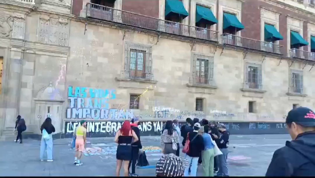 La mañana de este lunes los manifestantes brincaron los cercos que resguardan Palacio Nacional y realizaron pintas en el recinto para exigir respeto a los derechos de las personas transgénero.
