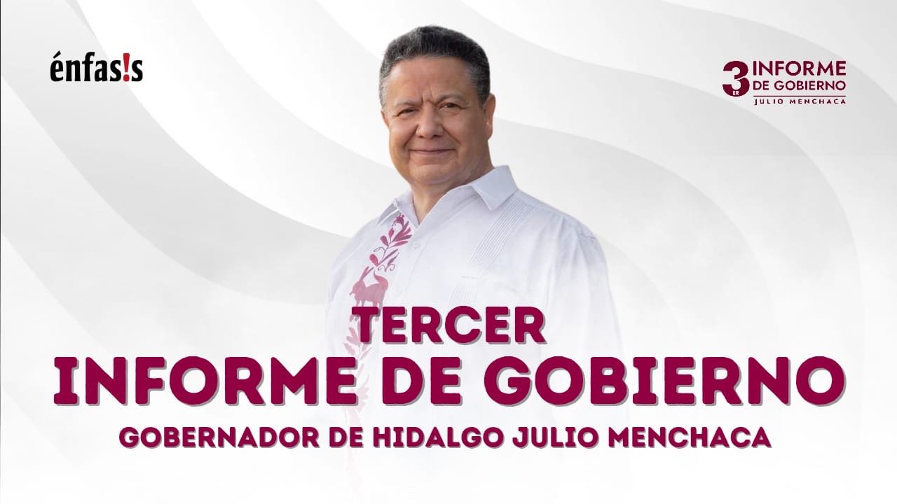 El gobernador de Hidalgo, Julio Menchaca Salazar, rindió su Tercer Informe de Gobierno ante el Poder Legislativo, donde destacó la lucha contra la inseguridad, la reducción de la deuda estatal y el impulso de programas sociales y obras de infraestructura.