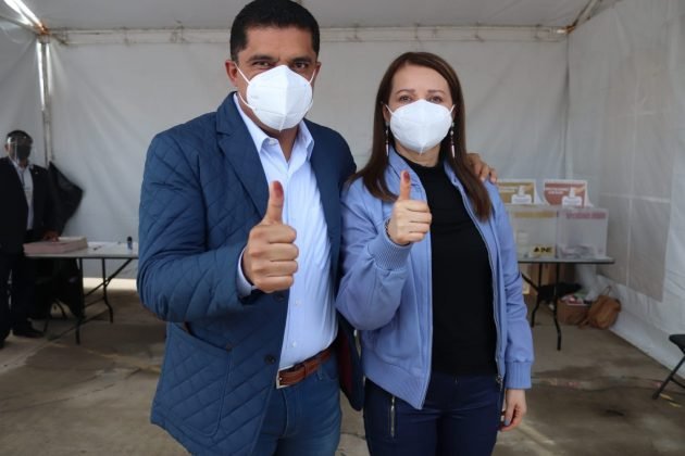 Julio Valera Piedras, presidente del Comité Directivo Estatal del Partido Revolucionario Institucional (PRI) en Hidalgo, acudió en compañía de su esposa Aideé Skinfield Escamilla a ejercer su voto a la casilla 1630 ubicada en Zempoala.