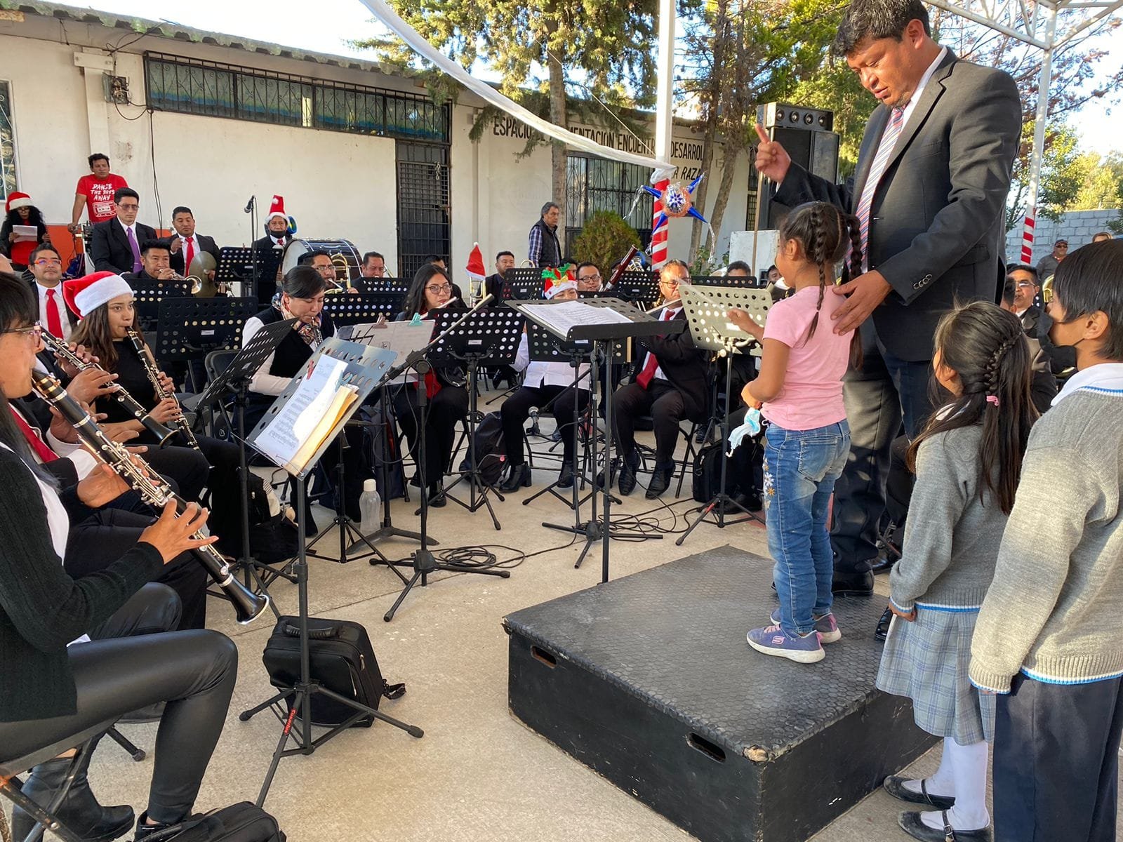 Un aproximado de entre 50 niñas y niños que habitan en la colonia La Raza fueron parte de las actividades de «La Navidad del pueblo», al dirigir a la Banda Sinfónica del Estado de Hidalgo, durante la primera presentación en la historia de la agrupación en esta colonia.