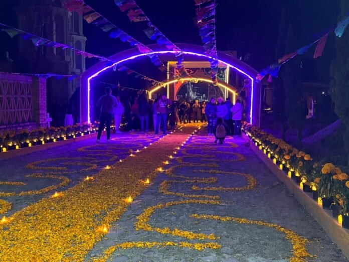 Para sorpresa de los asistentes, el joven alcalde también dio paso a la inauguración del recorrido por el cementerio que lució miles de flores de cempaxúchitl, y veladoras que marcaron el camino hasta el lugar donde descansan los difuntos.
