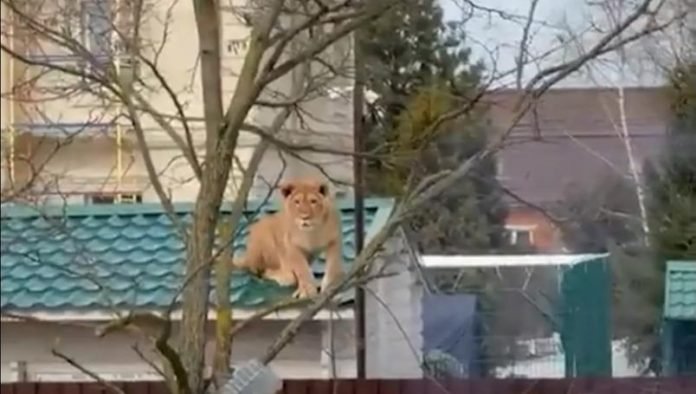 Ciudad de México.- Un león fue captado sobre el tejado de una casa ubicada en el pueblo de Kózino, Rusia, el pasado 26 de marzo. El video del momento en que los residentes avistan al carnívoro ya se ha hecho viral en YouTube.