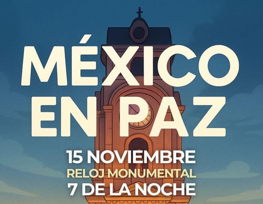 El evento, programado para la noche del sábado 15 de noviembre, propone que las y los asistentes acudan con vestimenta blanca y porten una vela, como símbolo de esperanza. En la ilustración que circula en redes se observa a un grupo de personas reunidas al pie del Reloj Monumental, en una escena que refuerza el sentido comunitario de la actividad.