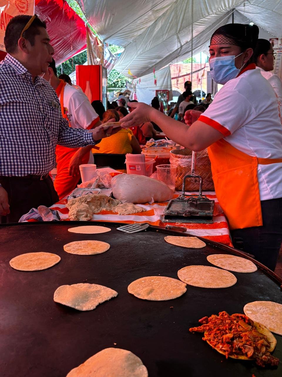 Otro de los platillos que fueron la delicia de los habitantes de toda la región que se concentraron en la plaza principal y de los visitantes a este lugar fue la exhibición del Ximbó que se elabora a base de carne de pollo, cerdo, nopales con una salsa de guajuillo, super delicioso.