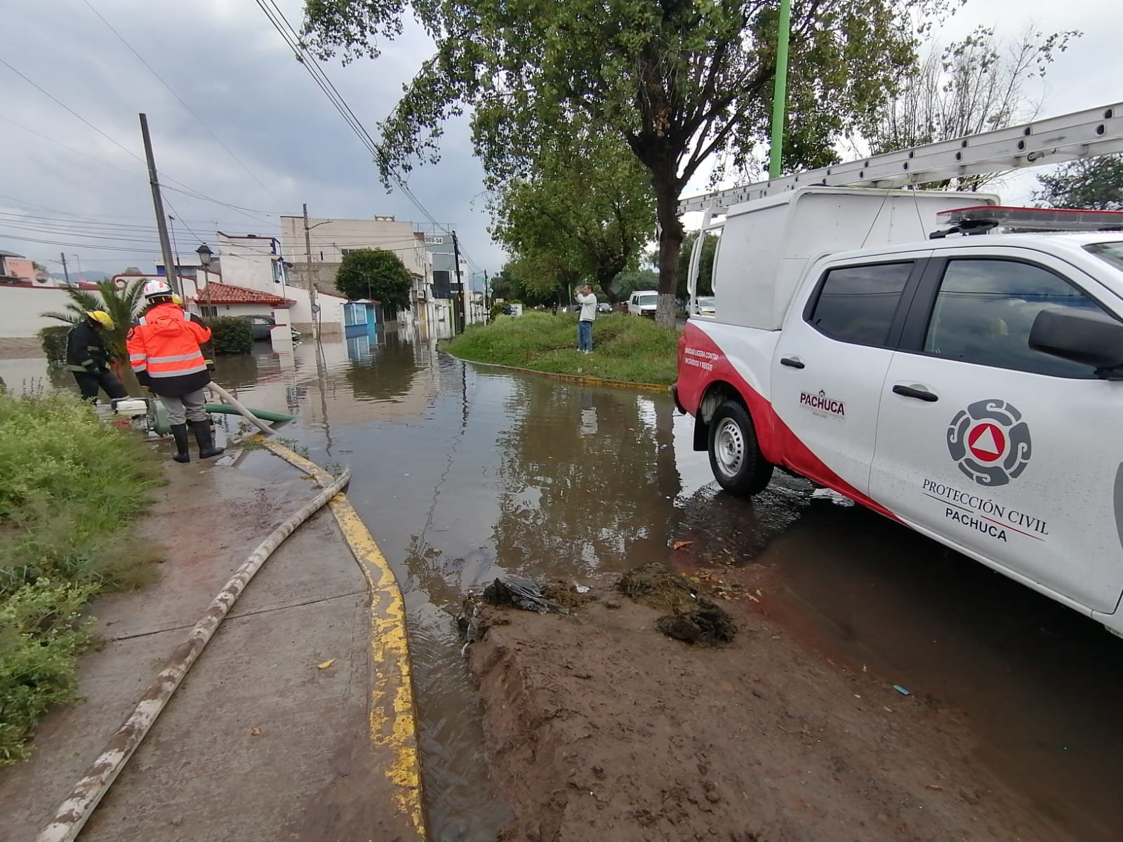 Personal de la Dirección de Protección Civil y Bomberos del municipio de Pachuca acudieron a estos lugares para dar atención oportuna a los habitantes de las colonias y fraccionamientos de esta zona.