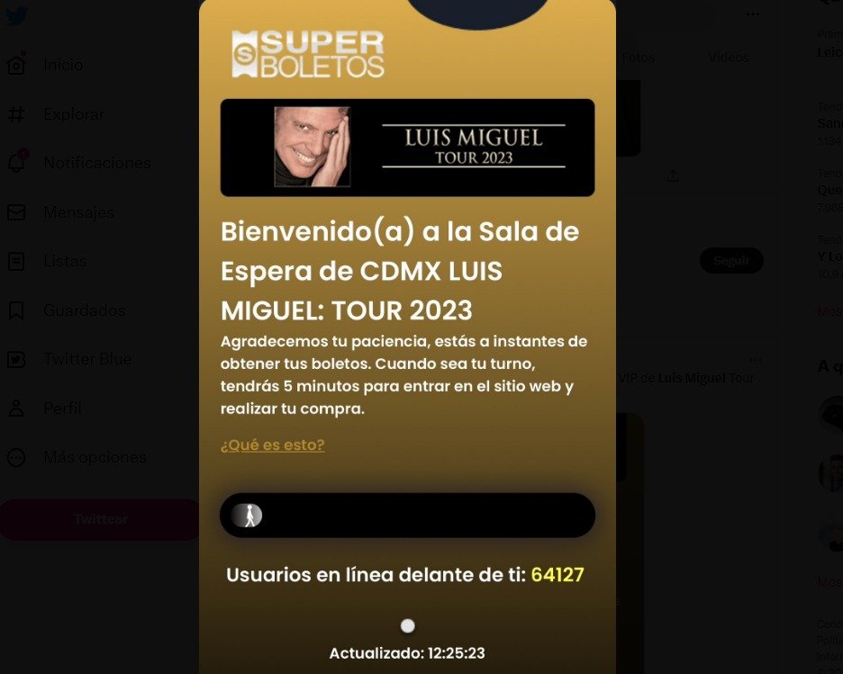 “Agradecemos tu paciencia, estás a instantes de obtener tus boletos. Cuando sea tu turno, tendrás 5 minutos para entrar en el sitio web y realizar tu compra», se lee en el mensaje para el Luis Miguel Tour 2023.