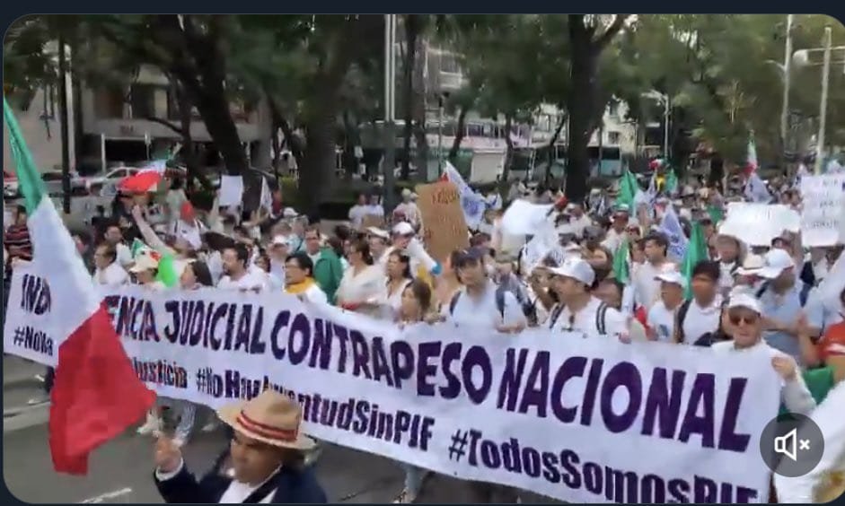 Durante la marcha de este domingo, los jóvenes lanzan también consignas como “La justicia no se vende ni requiere de popularidad”, “Nadie me contó ni me manipuló”, “¡Respeto a la división de poderes! Estado democrático de Derecho” y “¡La Constitución es de todxs lxs mexicanxs!”, en respuesta a los señalamientos desde el Ejecutivo.