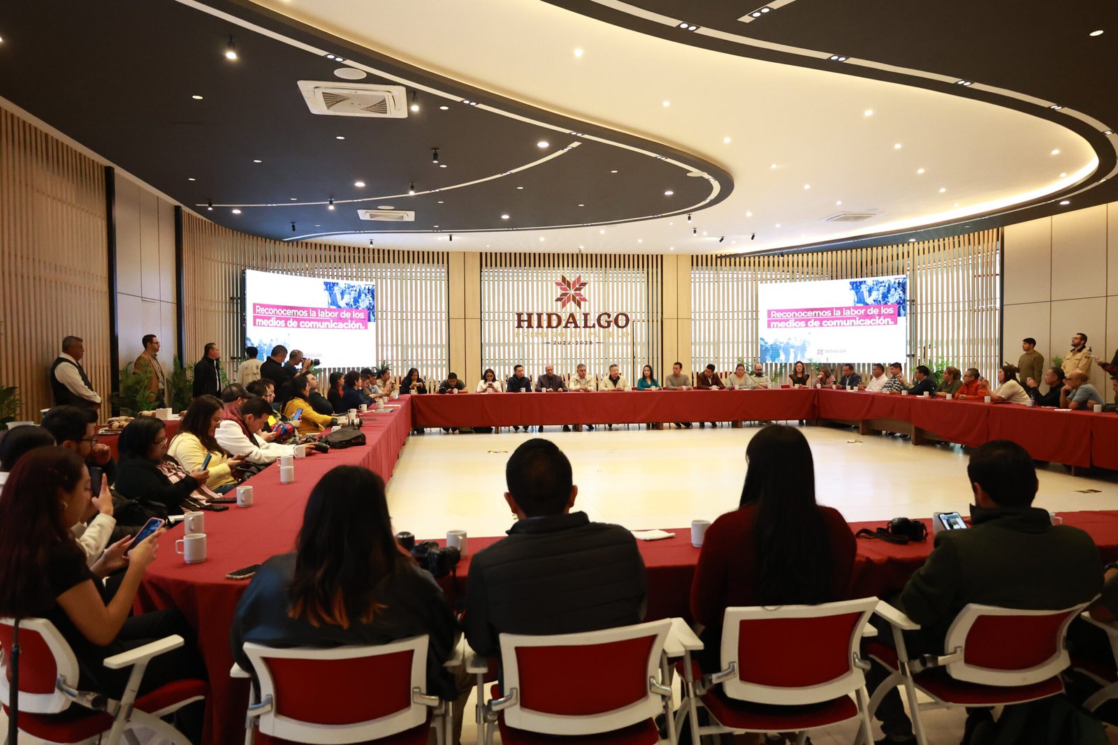 Durante la reunión, el mandatario estatal destacó el papel fundamental que desempeñan las y los profesionales de la comunicación en el estado, quienes —dijo— contribuyen de manera decisiva a mantener informada a la sociedad hidalguense con veracidad, responsabilidad y precisión.