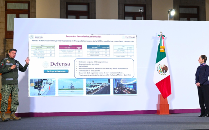 Ricardo Treviño, titular de la SEDENA, informó en la mañanera del 28 de noviembre de 2024, por instrucción presidencial la institución continuará con la construcción de tres proyectos clave que abarcan 3,000 kilómetros de vías. Estas rutas conectarán la Ciudad de México con Nogales, Sonora; Laredo, Tamaulipas; y darán soporte al transporte de carga del Tren Maya. Para ello, la SEDENAcuenta con la participación de ingenieros militares, garantizando que estas labores no afecten las funciones de seguridad de la institución. Según Treviño, se generarán más de 70,000 empleos directos y 140,000 indirectos.