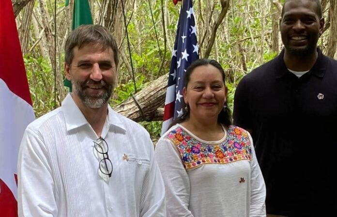 La secretaria de Medio Ambiente y Recursos Naturales (Semarnat) de México, María Luisa Albores González, recibe a sus homólogos, Michael S. Regan, Administrador de la Agencia de Protección Ambiental (EPA) de Estados Unidos, y Steven Guilbeault, ministro de Medio Ambiente y Cambio Climático de Canadá (ECCC).