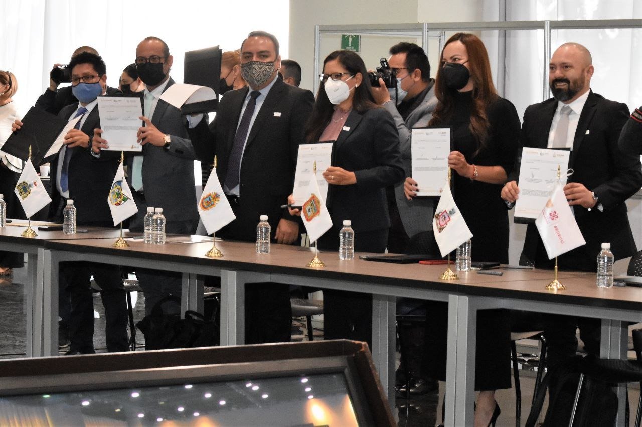 La firma del convenio de adhesión se llevó a cabo en la sede de la Secretaría de Economía de la Ciudad de México y asistieron el director general del IMPI, el titular de la Unidad de Normatividad, Competitividad y Competencia de la Secretaría de Economía, el secretario de Desarrollo Económico de Hidalgo, así como sus homólogos de 27 entidades.