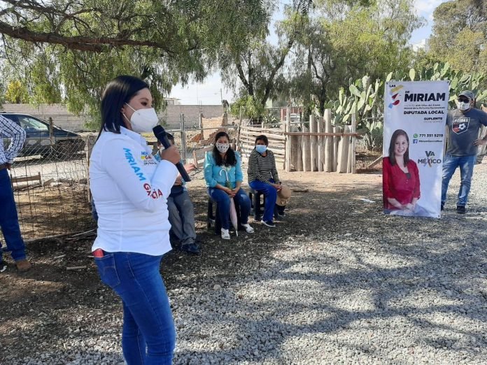 La candidata a diputada local por el Distrito XVII Villas del Álamo de la coalición Va por Hidalgo, que encabeza el Partido Revolucionario Institucional (PRI) Miriam García Monzalvo, visitó las comunidades San Miguel La Higa y San José Palma Gorda en Mineral de la Reforma.