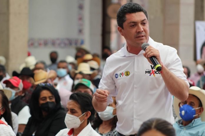 Acompañado del presidente del PRI, Julio Valera y del dirigente nacional de la Confederación Nacional Campesina (CNC), Ismael Hernández Deras, en el municipio de Apan, indicó que el partido en el gobierno coincidió la aplicación de la vacuna contra el covid-19 justo con el proceso electoral 2020-2021 en el que se renovará el Congreso de la Unión.