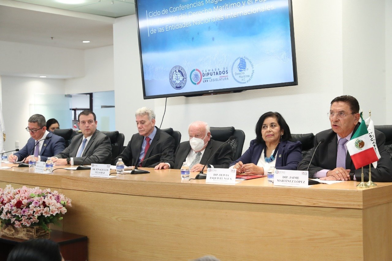 Al participar en el ciclo de conferencias magistrales “Unificación del Derecho Marítimo y el papel de las Entidades Internacionales”, destacó que México es un fuerte exponente comercial al contar con una ruta marítima que permite la proyección de los mercados de Europa, África y Asia.