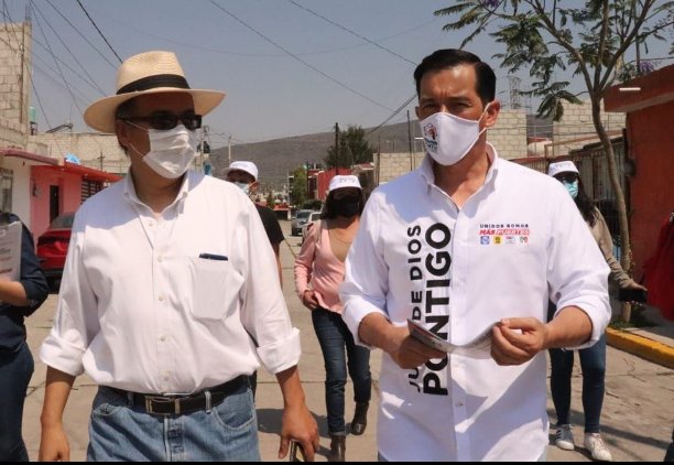 Juan de Dios Pontigo Loyola, candidato a diputado local por el Distrito XIII Pachuca de la coalición Va por Hidalgo acompañado de su compañero de fórmula Juan Carlos Robles, visitó a vecinos de las colonias Ramos Arizpe, para exponer sus propuestas y saber de las necesidades de los colonos. Posterior a ello, realizaron un toque puertas en la colonia Piracantos, donde se presentaron y difundieron sus planteamientos entre los vecinos.
